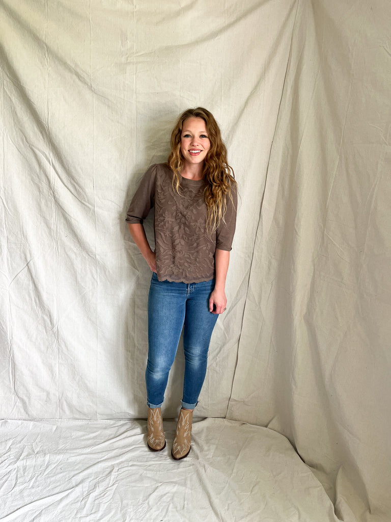 Okay, let's talk about how easy it is to layer with a good lace, especially a neutral lace like this one. This style compliments black denim, dark jeans, a skirt and I think it's a good pop under a neutral cardigan, blazer, or jacket.