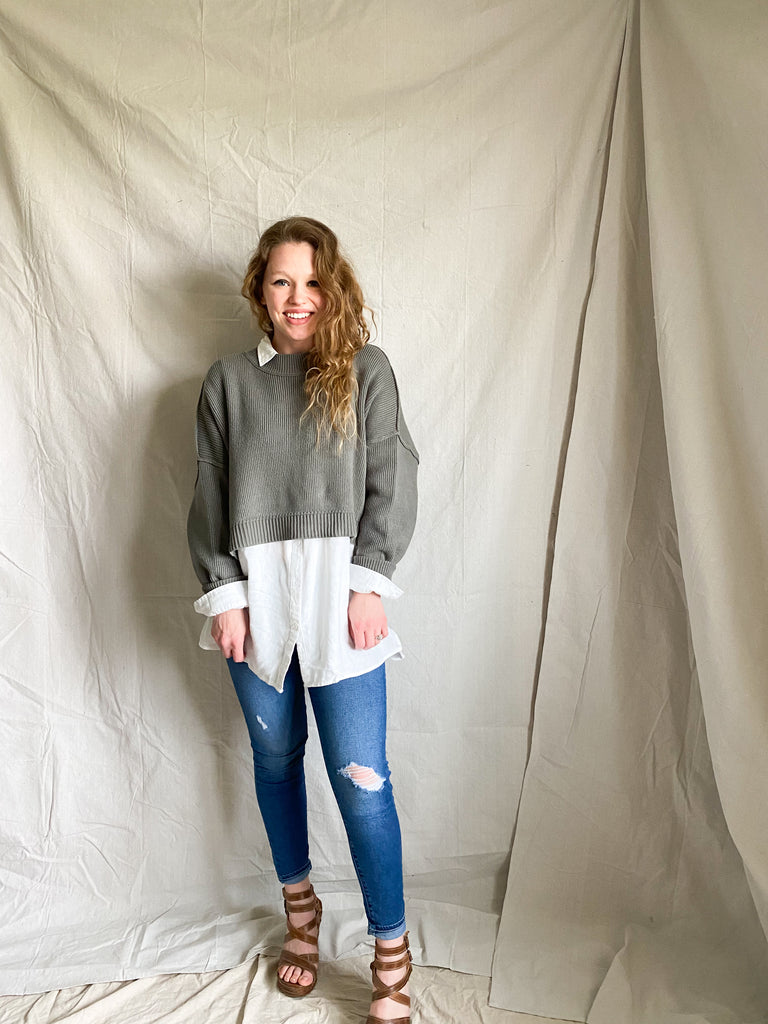 I think the color does the talking on this one. This effortless green + oh so comfy knit sweater is a Free People classic style (Easy Street) that y'all have loved in green + black. AND now, available in a cropped version for spring layers!