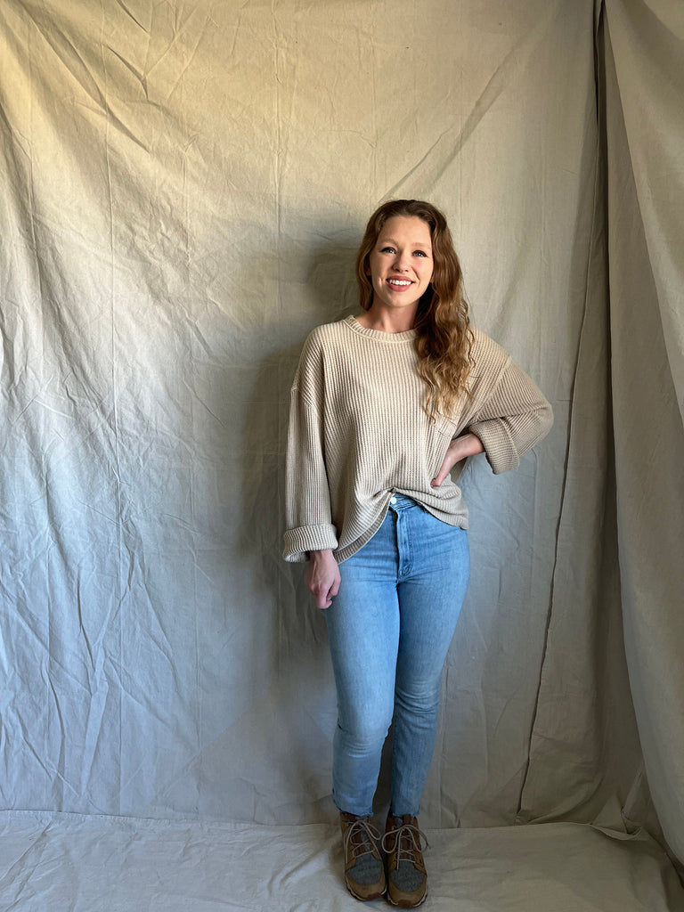 Easy is as easy does. This thermal is everything you need for autumn. Put it over a denim button up or a plaid. This is also a good one to put over a knit dress tied up. And a jacket is never a bad idea for a layer too.