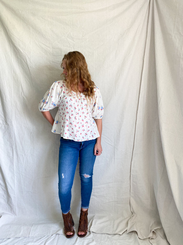 Red, white + floral. This top is so feminine, so lovely + so perfect for the "summer holiday" collection. I think it would be perfect back to jeans, shorts or even a skirt.