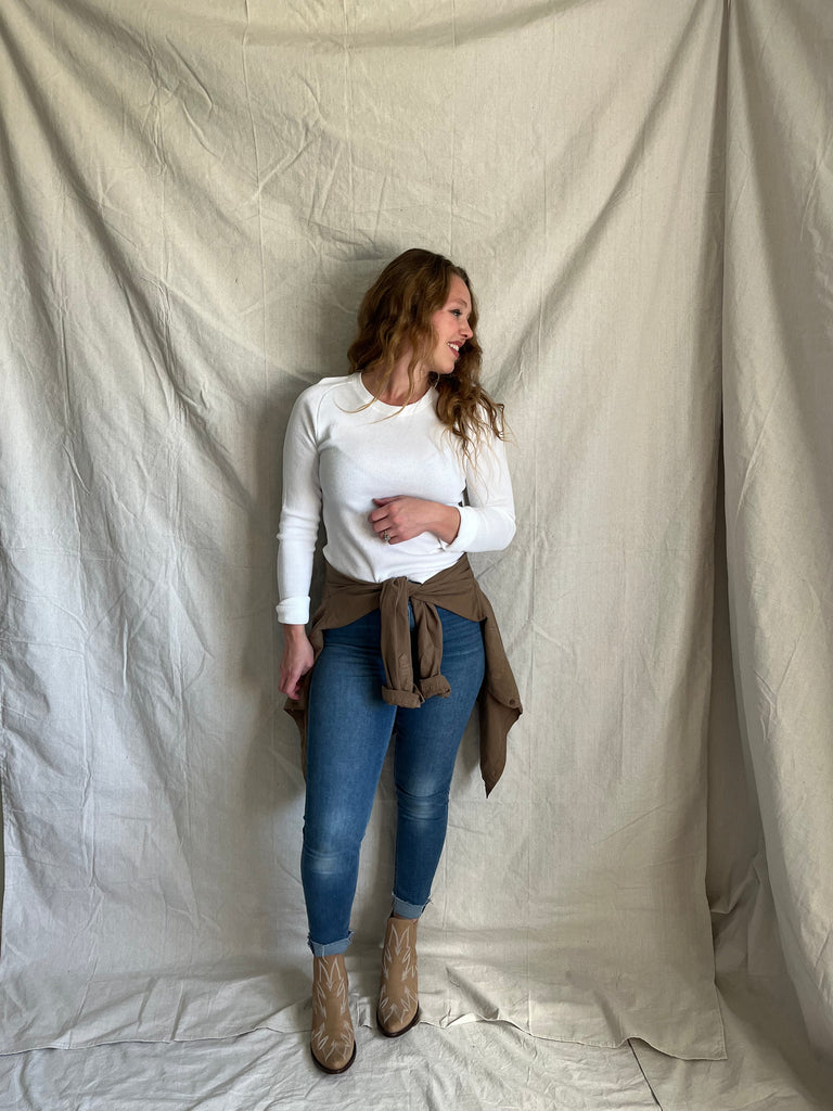 Hear me out, this thermal goes under almost every button down, jacket and cardigan your wardrobe. And bonus points because you can wear it solo too, tied up over a tunic or a dress. Now that is easy layering done right.