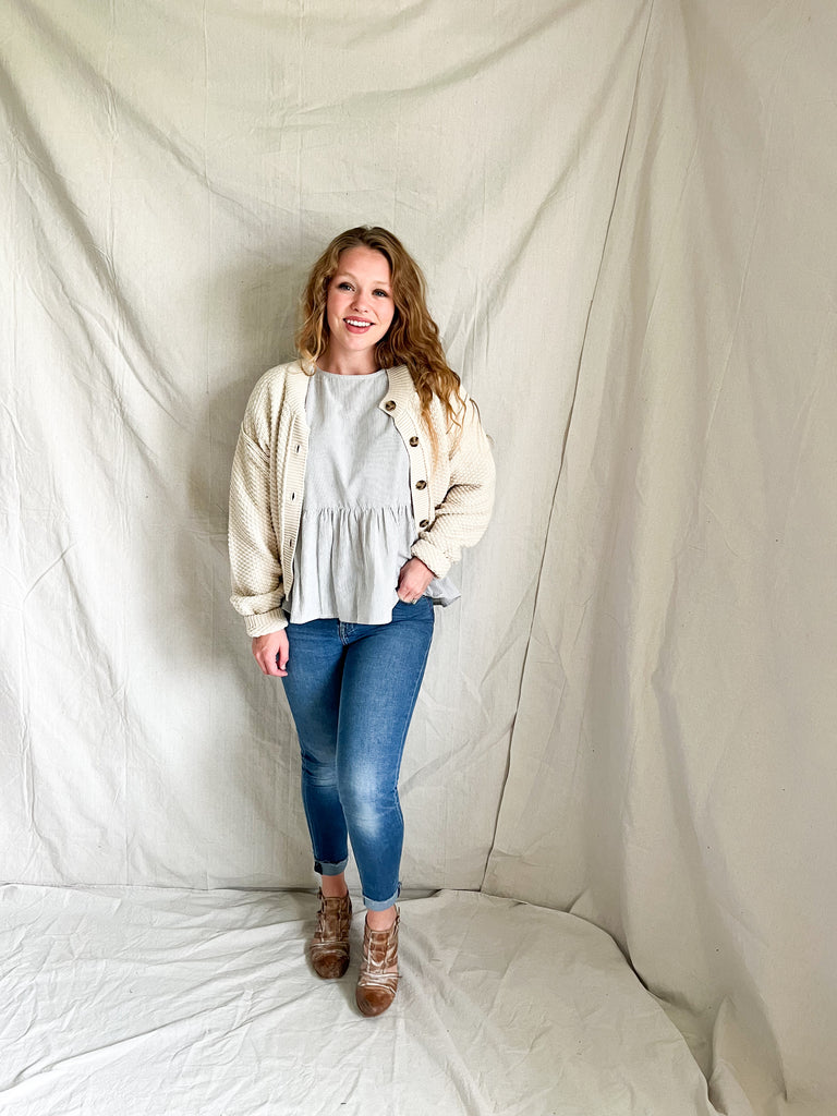 Stripes are always in season. This peplum is so classy and just a good staple to wear solo or layered under a jacket or chunky cardigan. It also makes a great option for the gal looking for some business casual styles.