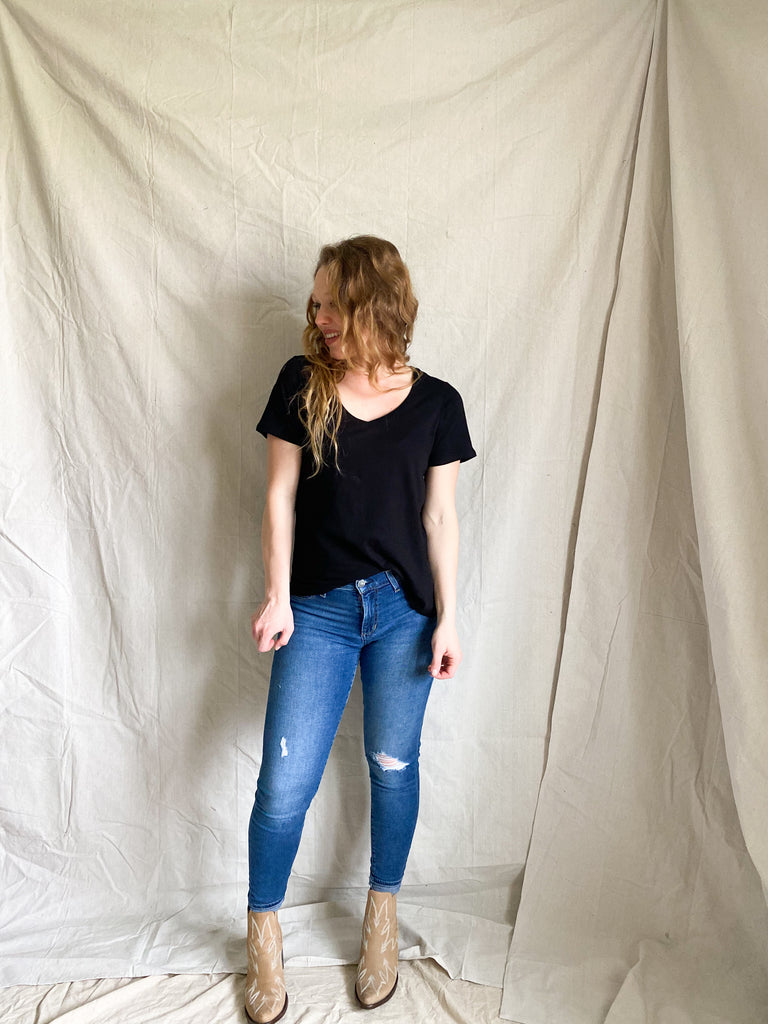 A good tee is like a good pair of jeans, every closet needs 'em. This tee is perfect for everyday wear, and yep you guessed it everyday layering! It is lightweight and easy to put under any shirt or jacket. It's also a great option for front tucking with jeans or pairing with your favorite skirt.