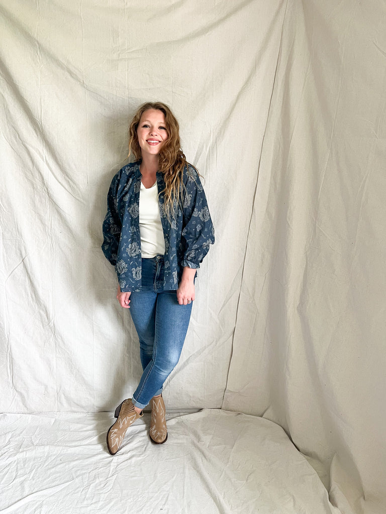 The perfect pattern for a classic western fall, b a n d a n a. This classy number is cute under an olive green jacket or cream knit cardigan. I also love it tied up over a dress or tunic style top, think of all the layering possibilities.