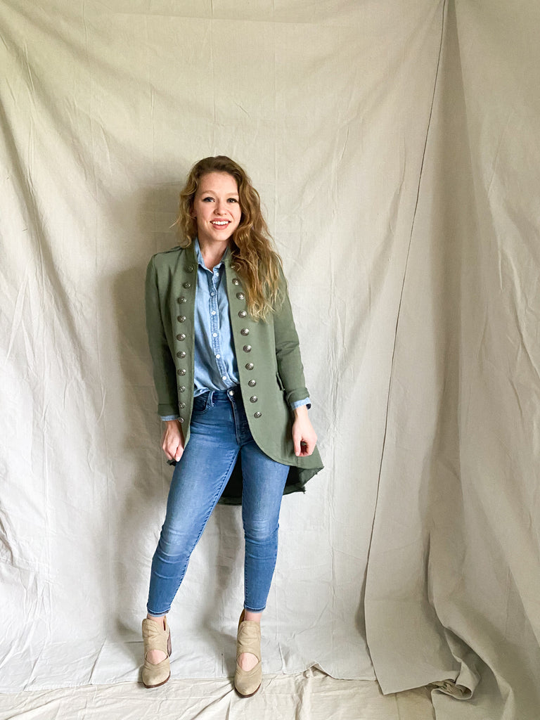 Everyone meet Trudie, Trudie meet everyone. The first cousin to the most beloved Tuck Jacket. And let me tell ya this jacket is as sweet and as easy as they come. I love to style it simple and sweet with a good shirt + dark jeans. Put it over a chambray button up, and Oxford top, a ribbed tank, a dress, a graphic tee, you name it.