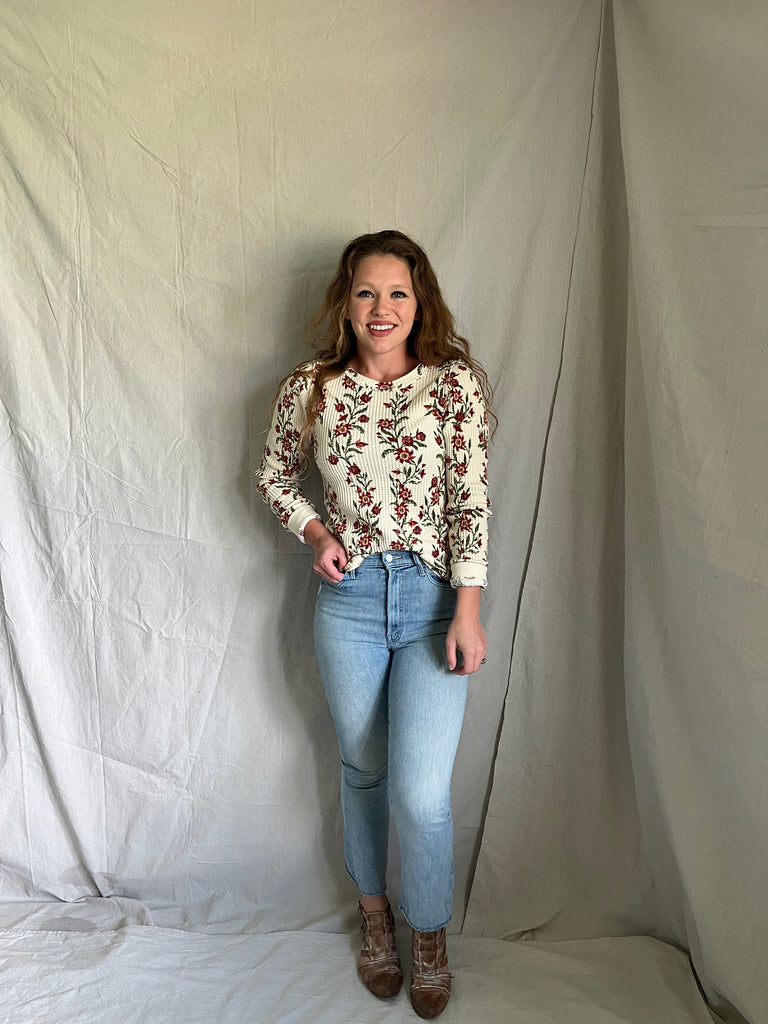 Let the floral do the talking, I just couldn't be more excited about a neutral flora print. This one makes me think autumn all the way (but can easily be transitioned to spring) Perfect under a vest, jacket, tied up over a dress, back to a fall skirt, it's really the MVP of fall printed thermals.