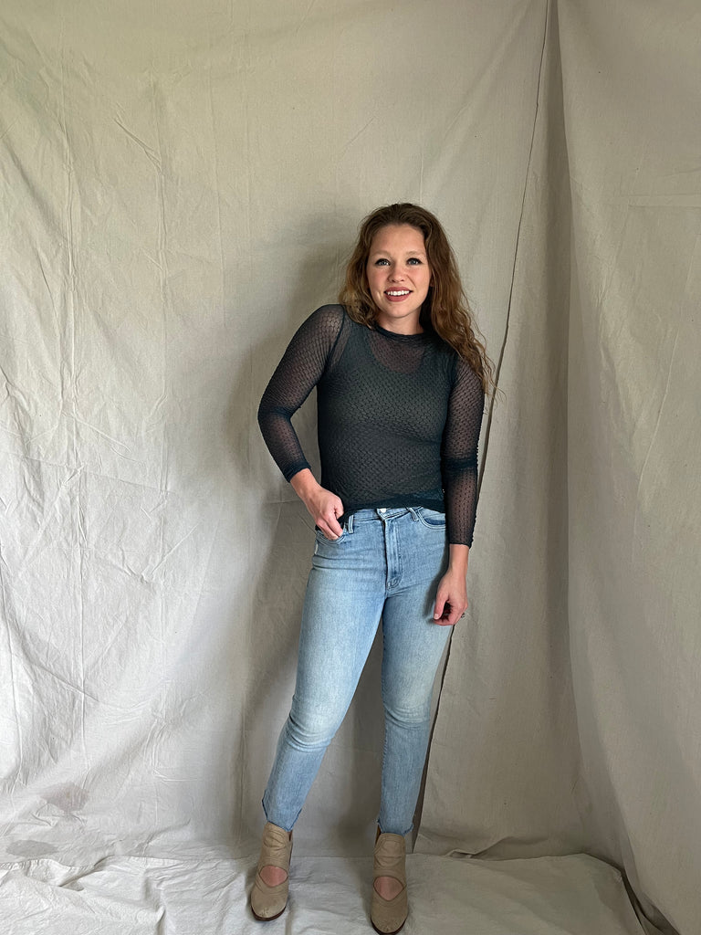 A unique take on the Lady Lux, but with a fabulous teal and a new pattern. This lace top is perfect under short sleeve tops, under sweaters, solo with a tank under or popped over a dress.