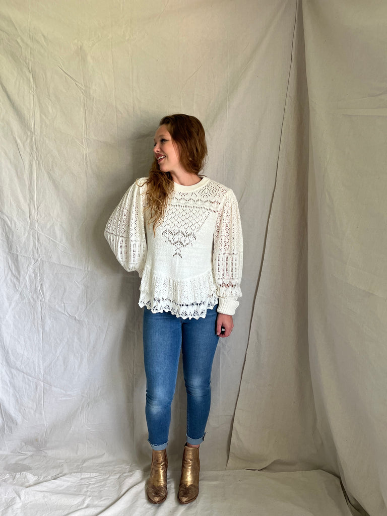 The perfect in between sweater for the first of fall. A pointelle design can be layered over a nude tank or a long sleeve statement. This sweater is sureeeee to be a one of kind in your wardrobe.