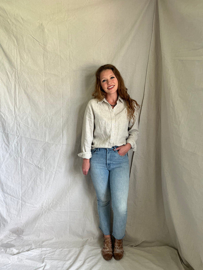 I can officially say, I found the perfect tailored linen button down. This 100% linen fabric, is the perfect mid weight for fall. This style will be worn in my personal wardrobe under all the jackets and sweaters. And my favorite party trick for the Sienna is tied up over your favorite tank top dress.