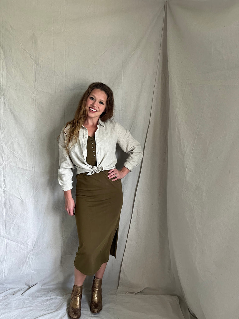 - side slit with 3/4 button at chest
