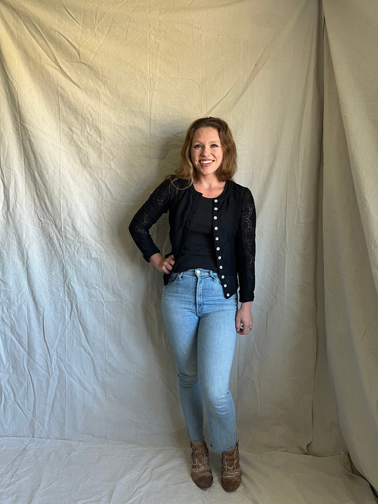 The cutest cropped lace sweater around. This cardigan is not lacking any details. Wear it buttoned like a shirt or open as a layer, its easy! I love the detail of the lace, what an heirloom style!